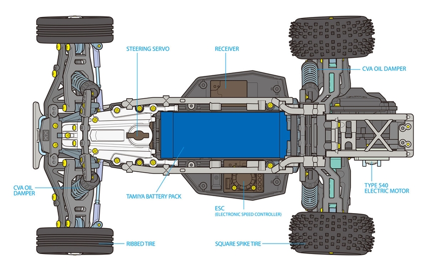 De fleste Tamiya byggesett leveres uten radio, mottaker, servo, batteri og lader. Sjekk produktbeskrivelsen hos RCEksperten.no for anbefalt elektronikk og tilbehør, eller ta kontakt om du ønsker hjelp til å velge riktig pakke.