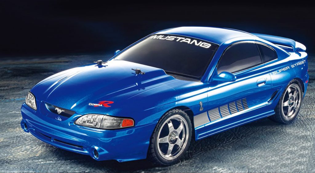 Tamiya FORD MUSTANG SVT COBRA R er et detaljert 1/10 skala RC touringbil byggesett fra Tamiya for deg som vil bygge selv og kjøre en ikonisk modell.