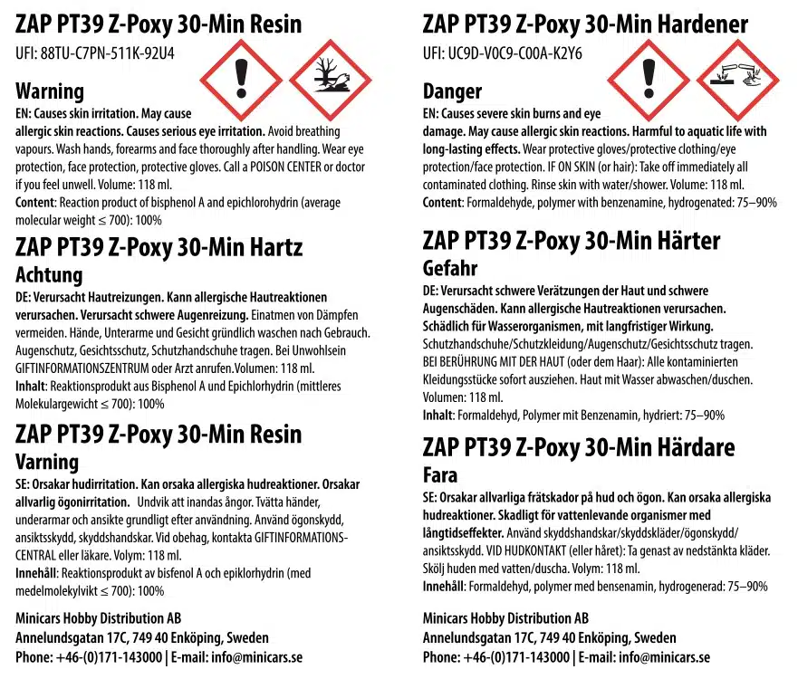 Enten du bygger modellfly, reparerer en RC-båt, limer glassfiber eller trenger et sterkt universal-lim til hobbyverkstedet, er ZAP PT39 Z-Poxy 30 min epoxy 236,5 ml et trygt og effektivt valg. Den klare formelen, sterke bindingen og gode arbeidstiden gjør dette til et lim mange entusiaster vil ha fast på arbeidsbenken.