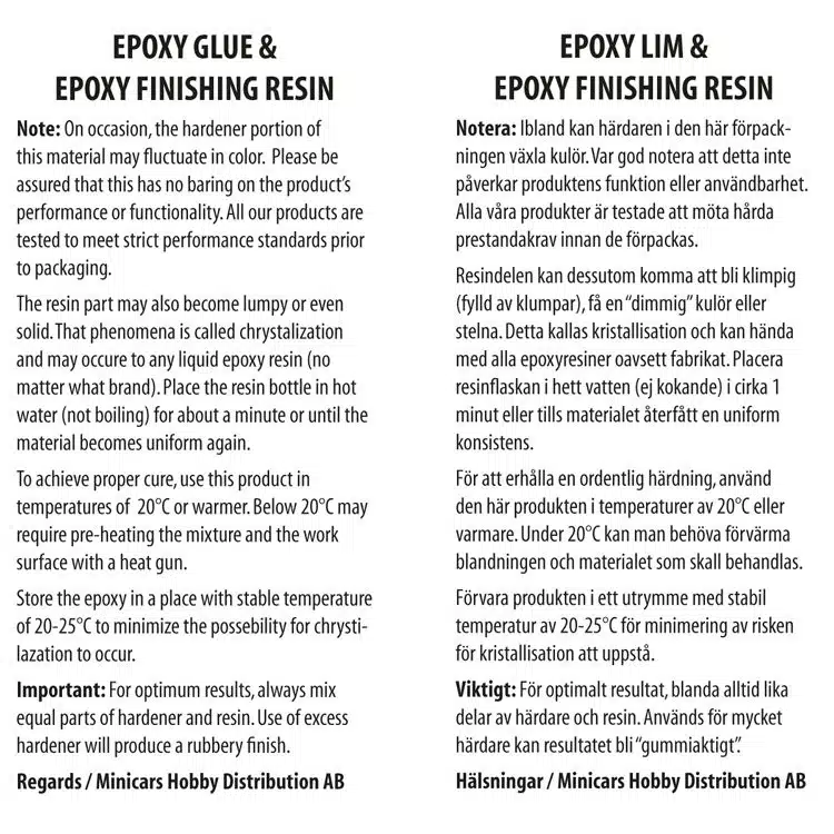 En av de store fordelene med 30-minutters epoxy er balansen mellom arbeidstid og styrke. Du får bedre tid til å justere deler sammenlignet med hurtiglim og rask epoxy, samtidig som du oppnår en solid og varig forbindelse. For mange typer modellbygging og reparasjoner er dette det beste kompromisset mellom brukervennlighet og ytelse.